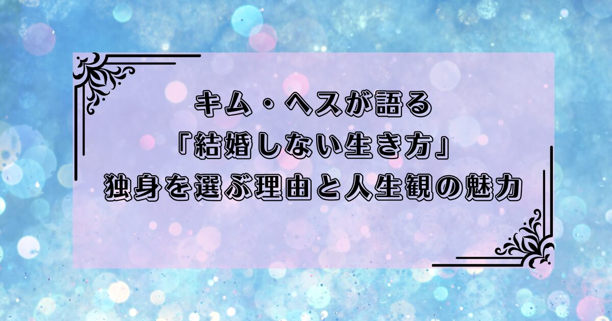 キム・ヘスが語る「結婚しない生き方」:独身を選ぶ理由と人生観の魅力