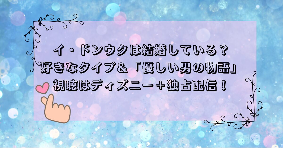 今回は、俳優イ・ドンウクさんの結婚に関する真相と、彼の好きなタイプと結婚式への考え方、主演ドラマ『優しい男の物語』について詳しく掘り下げていきたいと思います。